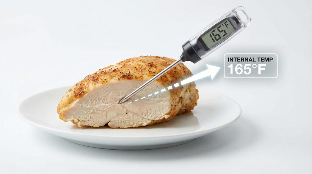 And every time you cut into the meat to check, you’re slicing open the muscle fibers that hold in moisture. Those juices pooling on the board? That was supposed to be in your mouth. A single cut can drain enough liquid to turn a juicy breast into cardboard. It’s the same problem as the “press your thumb” meat test — you’re using a subjective method when an objective one exists.